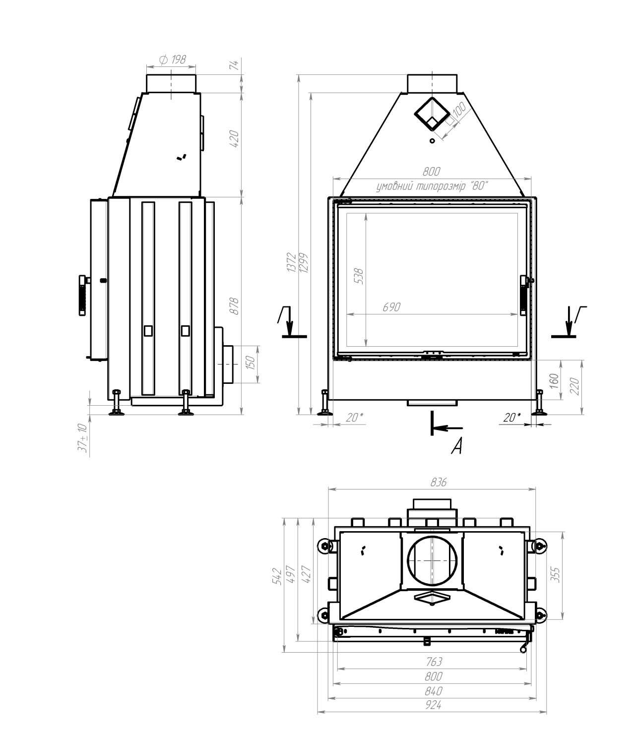 Корпус топки зроблений із якісної жаростійкої сталі 3-5 мм, що забезпечує довговічність та витривалість до високих температур.
